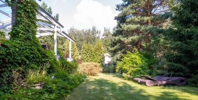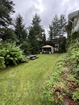 Участок площадью 12 соток, статус земли ИЖС. Участок ухоженный, зеленый, есть фонтан, беседка, парковка на 3 автомобиля.
