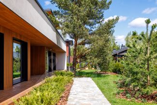 Одноэтажный дом премиум-класса, в основе которого заложен принцип теневого проектирования: были изучены рельеф, климат, метео- и природные данные, роза ветров, движение солнца по часам и особенности участка. Это позволило создать гармоничную и энергоэффективную архитектуру, полностью соответствующую окружающей природе.