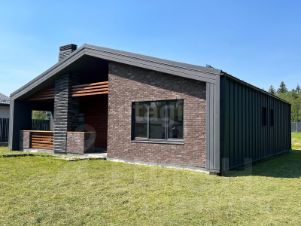 В доме 3 изолированные спальни и просторная кухня-гостиная 40 кв.м. с двумя панорамными окнами, два сан.узла и терраса 23 кв.м.