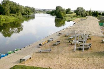 пляжем на берегу Москвы-реки с лодочной станцией и с беседками для отдыха,