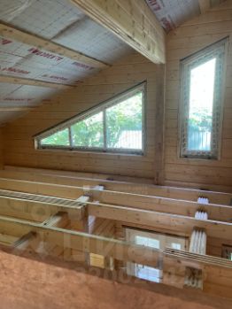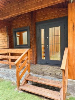 Клееный брус, бетонный монолитный фундамент ,крыша гибкая черепица, мягкая кровля, панорамные окна, ламинированные стеклопакеты, мансардные окна, широкая двойная входная дверь.