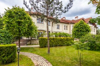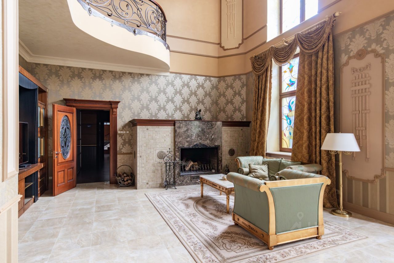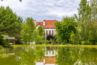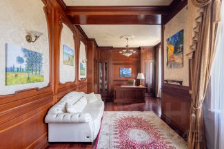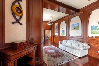 Загородный особняк в стиле русского модерна площадью 2009 м построен на просторном участке 0,9 гектара с собственным озером.