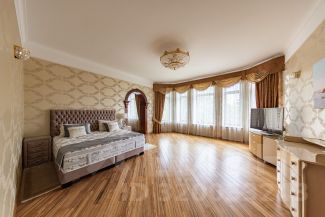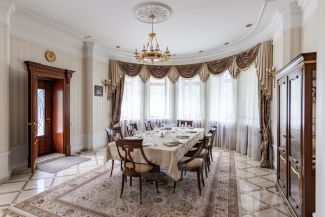 Планировкой резиденции предусмотрены 3 спальни, 2 гостиные, одна из которых с камином и вторым светом, кухня, 2 столовые, кабинет и SPA-зона с бассейном длиной 16 метров, хаммамом и сауной.