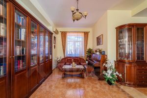 Цокольный этаж: три комнаты с отделкой (бильярдная, тренажерный зал, гардеробная), три комнаты без отделки (сауна, душевая с джакузи, комната отдыха), котельная.
