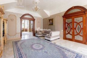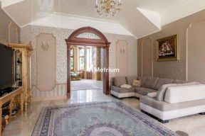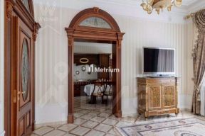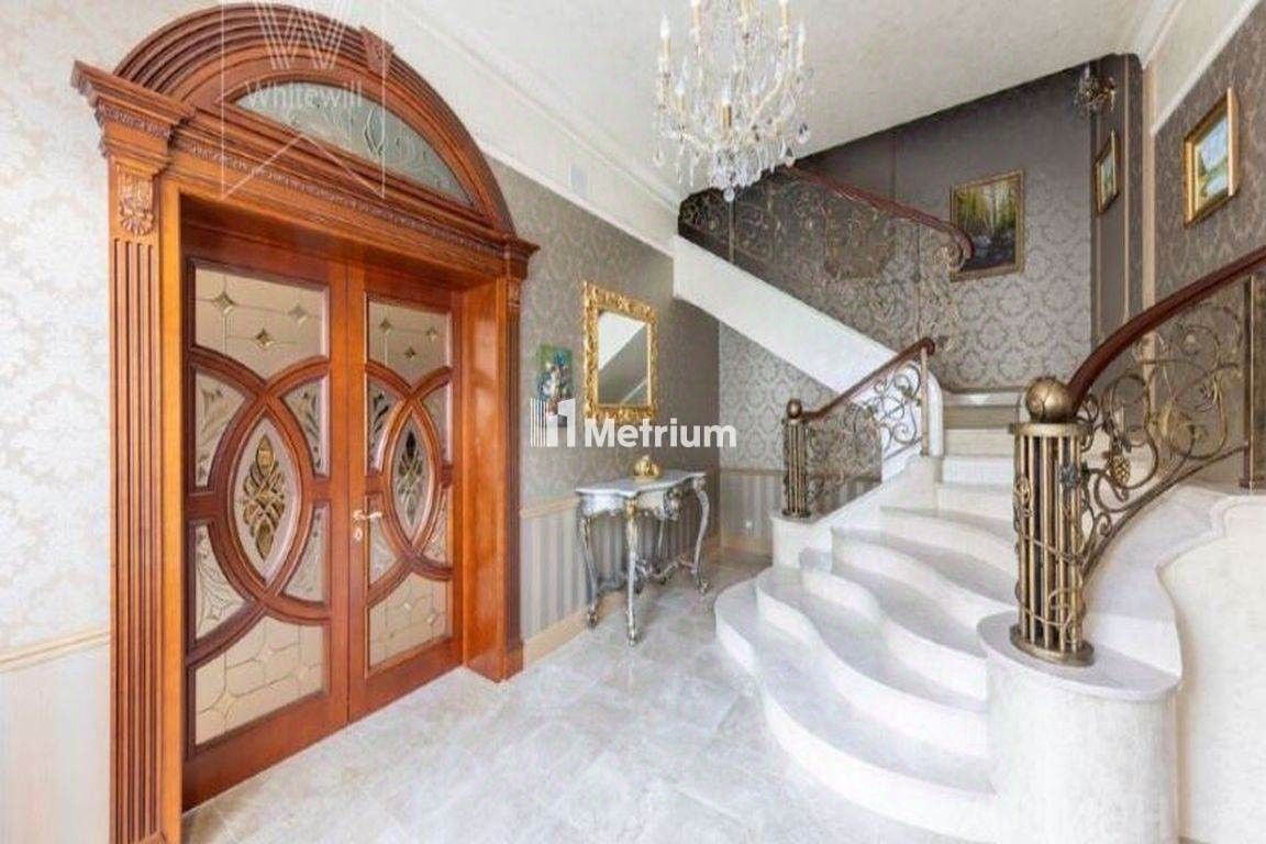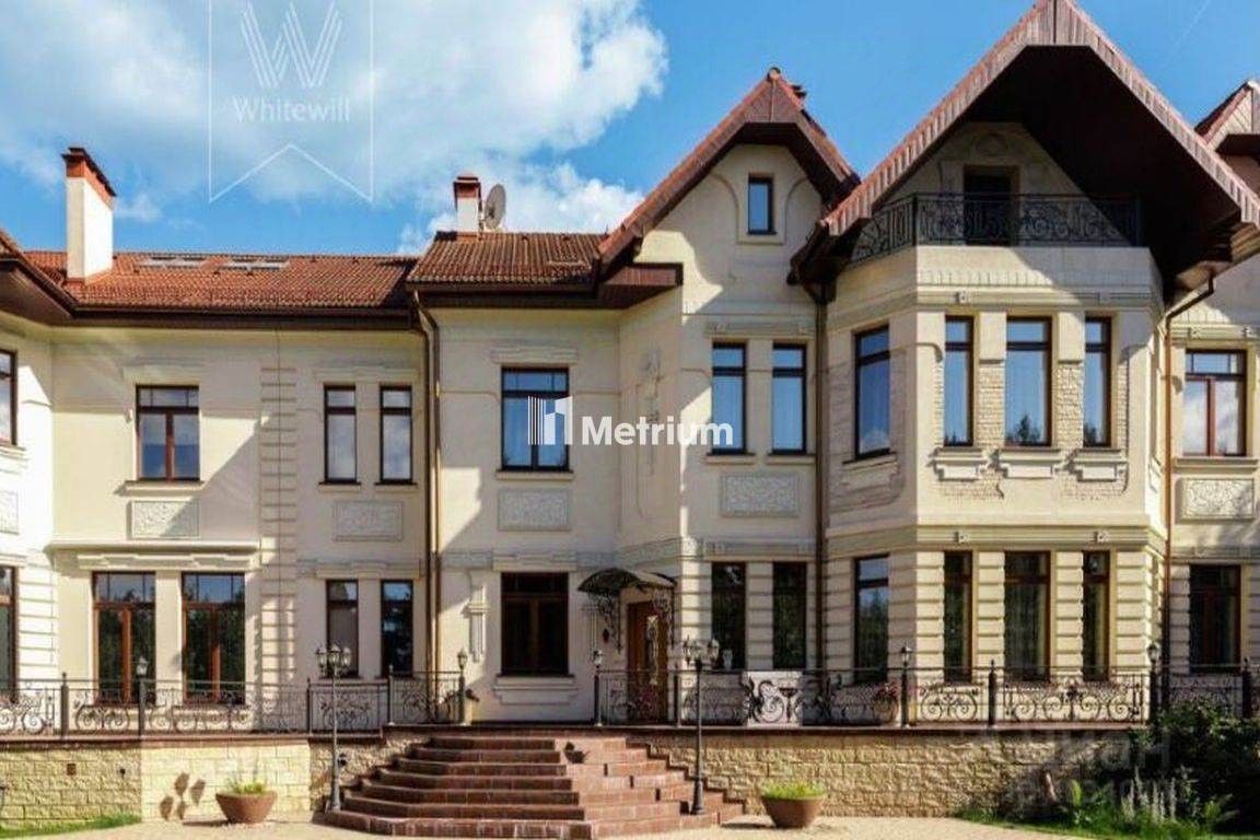 ID 13279 Дом в стиле русского модерна площадью 2009 м² построен на просторном участке 0,9 гектара с собственным озером. Фасад дома облицован бежевой штукатуркой, декорирован панно, рустовкой и коваными элементами. В отделке интерьера использованы светлые, теплые оттенки, создающие атмосферу уюта. Планировкой дома предусмотрены 3 спальни, 2 гостиные, одна из которых с камином и вторым светом, кухня, 2 столовые, кабинет и SPA-зона с бассейном длиной 16 метров, хаммамом и сауной. На территории построены 4 гаража, гостевой дом, летний домик, беседка и зона барбекю, а также обустроены парк, сад, фонтан и паркинг. На участке с 2-мя въездами выполнены ландшафтный дизайн и дренажные работы, установлена система автополива, вымощены дорожки и оборудовано уличное освещение.