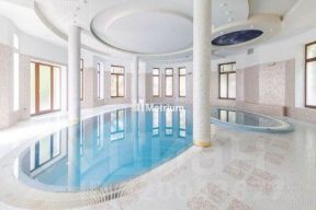 1-й этаж: 2 гостиные, 2 столовые, кухня, 2 гардеробные, SPAзона с 2-мя бассейнами, хаммамом, сауной, комнатой отдыха и массажной, тренажерный зал, кинотеатр, зал для танцев.