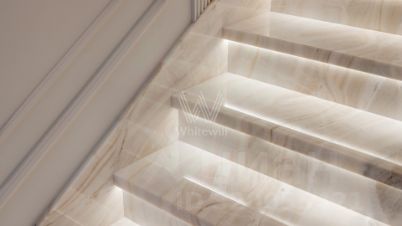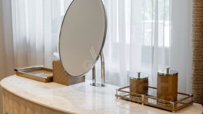 Николино. Дом в европейском стиле площадью 357 м² построили на уютном участке 12 соток с лесными деревьями. Фасад дома облицован бордовым клинкерным кирпичом, украшен колоннами и фигурной ковкой. В отделке интерьера использованы мрамор, натуральное дерево, оникс. Резиденция укомплектована итальянской мебелью Baxter, Minotti, Sovet, кухонной техникой Miele и сантехникой Gessi. Планировкой предусмотрены 3 спальни, кухня-столовая-гостиная с выходом на террасу с выдвижной маркизой, кабинет и каминный зал. Рядом расположен гараж с блоком для персонала. На участке выполнен ландшафтный дизайн, дорожки вымощены плиткой и камнем, высажены декоративные кустарники.