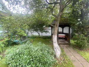 На участке плодовые деревья и кустарники, цветы, теплица, грядки, декоративные деревья и кустарники, газон, вымощены дорожки. Очень красиво и уютно как на участке, так и в доме.