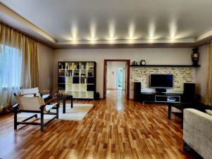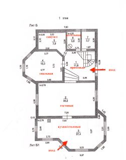 Первый этаж - кухня/гостиная 27,4 кв.м., комната 30,2 кв.м., комната 18,3 кв.м., прихожая, гардероб, котельная.