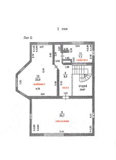 Второй этаж - комната 29,7 кв.м., комната 22,9 кв.м., санузел.
