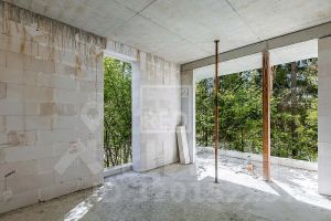 Объект незавершённого строительства 2025 года с плоской крышей в актуальном стиле. Высота потолков 3-5 метров, в кухне-гостиной по дизайн-проекту есть второй свет и выход на террасу. Большие панорамные окна с видами на лес и хвойно-лиственные вековые деревья на участке 12 соток. Статус земли - ИЖС. На участок заведён газ, электричество 20кВт, скважина 138м с артезианской водой, по периметру дома - тёплый контур, канализация - септик. Строительство осуществляла компания "Домгазобетон", при необходимости с этой же компанией новый собственник может продолжить дальнейшее выполнение работ.