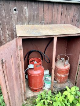 Отопление - твердотопливный котел, расположенный в пристройке к дому, батареи отопления расположены во всех комнатах.