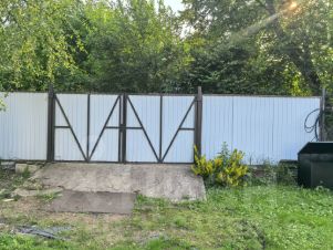 На территории много зелени, плодовые (и не только) деревья и кустарники. Есть погреб и хозблок, рядом с которым часть фундамента для свободной застройки - беседка, еще один хозблок.