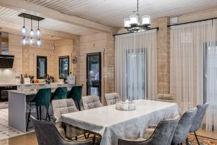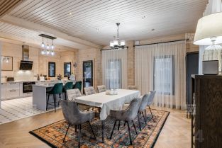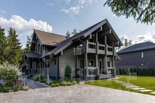 Лот: 69. Эксклюзив! Предлагается невероятно качественный и уютный дом-шале, который строили для себя! Дом выполнен из натурального клееного бруса нестандартного широкого размера 260х240, дом в котором легко дышится, пахнет свежестью и благородным деревом. Дом находится в идеальном состоянии, готовый к незамедлительному проживанию и не требует никаких вложений или переделок. Прекрасная планировка дома была продумана до мелочей, что сделает проживание ещё более комфортным. Более подробно о планировочном решении. На 1-м этаже расположены: кухня-столовая с гостиной (100м), спальня-1 с гардеробной (20м+3м), постирочная (10м), гостевой санузел, банный блок с сауной (20 м), кладовая (10м). На 2-м этаже расположены: мастер-спальня со своим санузлом и гардеробной (32м), кабинет (9м), спальня (18м), ванная (12м), детская (32м). В доме 4 уютные террасы. Огромное внимание в доме уделено хранению, предусмотрены не только гардеробные и кладовки, но и встроенные шкафы для дополнительного хранения, которое никогда не бывает лишним. На территории участка есть хоз.блок (25кв.м.) для хранения инвентаря, крупногабаритных предметов, шин, техники и тд. С точки зрения технической составляющей: дом подключен к центральной канализации, водоснабжению, электричеству и газифицирован (прямой договор с Газпром межрегионгаз). Мощность эл. - 20 КВт. Газовый котел Viessmann, а также есть резервный электрический котел и бензиновый генератор. В доме установлены кондиционеры, усилители сотовой связи и WiFi, что обеспечивает высокое качество связи. Дом оснащен системой охранной сигнализации с видеонаблюдением. На участке выполнен ландшафтный дизайн, выложены многочисленные цветы, деревья, кустарники и прочие растения, проведено уличное освещение, уложен элитный рулонный газон. Дополнительно на участке имеется: зона барбекю с мангалом, детский игровой дом, батут. На территории есть парковка на 2 автомобиля, а также есть 2 гостевых места во внешнем контуре. Важно отметить, что все внешним и внутренние отделочные материалы, это материалы самого высокого качества и от надежных производителей (Италия/Германия/Испания/Финляндия/Австрия,США). Некоторые позиции вообще сейчас крайне дефицитны, например немецкий клинкерный кирпич, клинкерная плитка и тд. По периметру участка сделан забор на бетонной ленте, въезд на территорию через электрические ворота. Приезжайте на просмотр и убедитесь сами в неподражаемой атмосфере и энергетике этого дома.