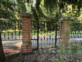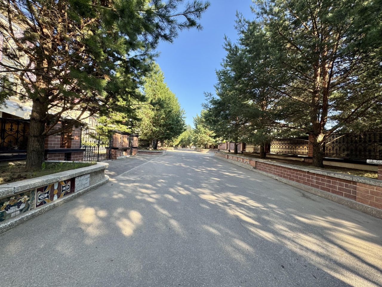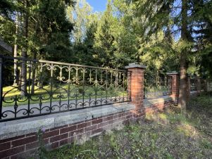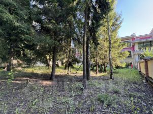 Участок ровный лесной с выходом на прогулочную дорожку в парковой зоне.