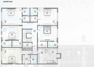 2 этаж: холл, 5 спален, каждая из которых имеет свой с/у и гардеробную, игровая или комната отдыха.