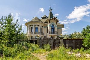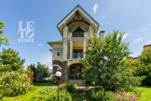 Фасад отделан с использованием дорогостоящих материалов: мраморная мозаика, гранит, натуральный английский и итальянский камень. На фасаде выполнена акцентная подсветка. На крыше гибкая черепица Katepal. На балконах и фасаде - ковка по индивидуальному проекту. В доме предусмотрена установка лифта. В гостиной - дровяной камин. Вокруг дома сделана отмостка.