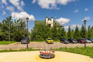 На участке выполнен ландшафтный дизайн, по периметру высажены редкие сорта хвойных и плодовых деревьев. Перед домом на участке два парковочных места. Также есть гостевая стоянка на 6 машино-мест рядом с участком. На участке также построен гостевой дом (баня) из оцилиндрованного бревна.