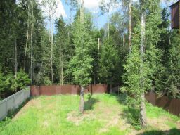 Участок ровной прямоугольной формы, граничит с лесом, полностью огорожен забором, назначение - индивидуальное жилищное строительство. К участку подведены все центральные коммуникации: газ, электричество 15 кВт, водопровод, канализация.