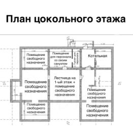 Цокольный этаж (по площади = первому этажу):
