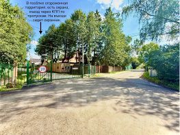 В шaговой доступности небольшое озеро. Въезд на территорию посёлка-через КПП со шлагбаумом. На КПП сидит охранник.