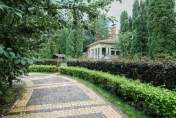 Ровный, благоустроенный с дренажной системой, на участке высажены плодовые деревья, декоративные кустарники, взрослые деревья, детская площадка, парковочная зона ж/б, мощение клинкер, два въезда на участок, раздвижные автоматические ворота.