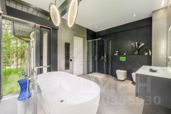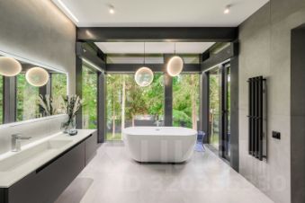 хозяйская спальня 27 кв.м с ванной комнатой 13 кв.м (панорамная ванна + просторная душевая), гардеробной и балконом.