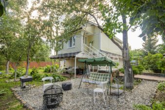 На территории расположен уличный туалет, хозблок, гараж на 2 машины, вольер, сад с цветами, фруктовыми и хвойными деревьями, мангальная зона, Прямо на участке пляж со своей пристанью.
