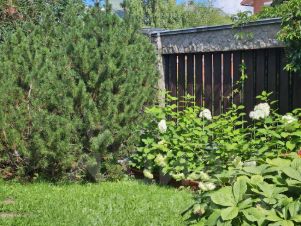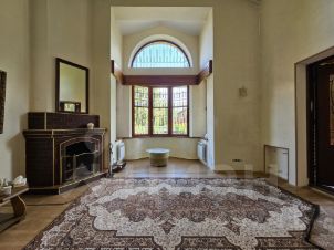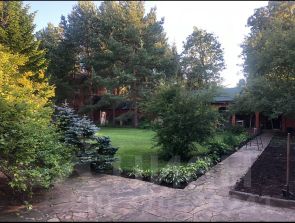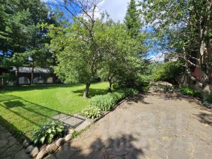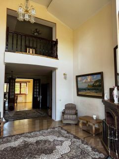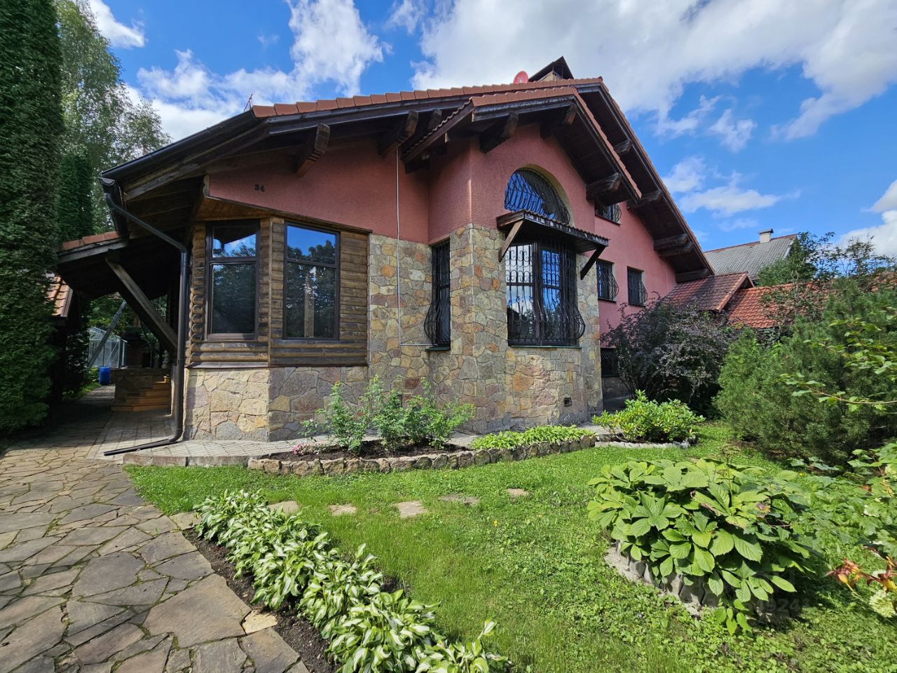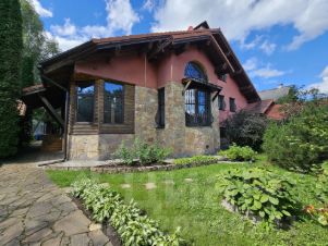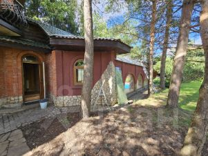 Благоустроенный участок площадью 15 соток имеет собственный выход в лес. Возможна аренда примыкающей части леса у Лесфонда. На участке есть подсобные помещения и зоны отдыха, дорожки вымощены камнем. Дом в стиле шале площадью 585 кв.м построен из керамического кирпича. Фасады облицованы природным камнем, крыша покрыта керамической черепицей. В здании три надземных этажа и один цокольный. На первом и втором этажах 6 спален и 3 санузла. В двухсветной гостиной большой камин и выход в зимний сад. На третьем этаже мансарда. В цокольном этаже расположены сауна, санузел, зоны отдыха, подсобные помещения и выход во встроенный гараж.