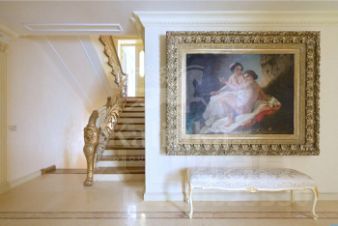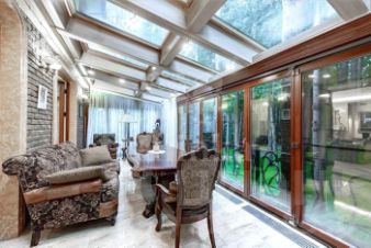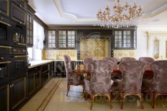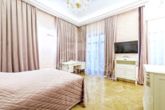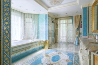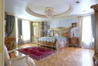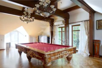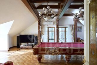 Кирпичный коттедж площадью 920 кв. м на участке 16 соток в охраняемом камерном поселке Лапино. Интерьеры дома выполнены в классическом стиле. Дом полностью меблирован и укомплектован всей необходимой техникой. В планировке предусмотрено 6 спален с гардеробными, 9 санузлов, 2 просторные террасы, гостиная с камином, кухня-столовая, а также СПА-зона с бассейном, сауной и комнатой отдыха. На участке проведены ландшафтные работы, вымощены дорожки, установлено освещение, проведен оптоволоконный интернет. Отдельно расположены: беседка с зоной для барбекю, дом для персонала, гараж на 5 машиномест (с зарядкой для электрокаров), генератор электричества и вольер для собак. Коммуникации: вода - скважина, канализация - центральная, газ - магистральный.