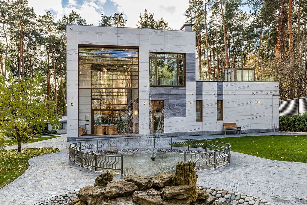 ID 8471. В престижном коттеджном поселке "Новь", всего в 5 км от МКАД, расположен великолепный полностью меблированный особняк площадью 875 кв.м., раскинувшийся на ухоженном участке в 24 сотки