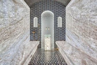 первый этаж: просторный холл, гардеробная, гостиная-столовая с высокими потолками, кухня с выходом на террасу, кладовая, главная спальня с гардеробной и ванной комнатой, гостевая спальня, два гостевых санузла, SPA-зона с бассейном, сауной, хамамом, душевыми, санузлом и тренажёрным залом, технические и хозяйственные помещения.