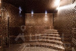 1 этаж: 2 гардеробные, лифт, санузел, просторная гостиная 140 кв.м., кухня - столовая, SPA-зона с бассейном 14,5*4,5 метров, паровая кабина, санузел. Дополнительно на этаже расположена квартира для персонала. По периметру дома несколько уютных террас. Гараж на 2 автомобиля в контуре дома