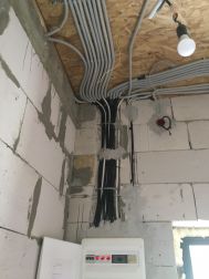 Электрика - разведена полностью по дому, на входную группу (ворота+калитка), колодцы и уличное освещение