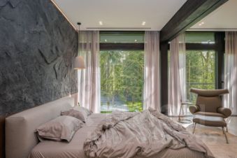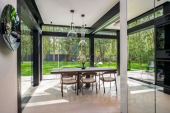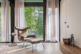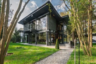 Волшебный дом с прозрачными стенами на лесном участке. Загадочный лес полновластный участник интерьеров. Эстетика здания базируется на строгой геометрии, простоте объемов. Пространственная несущая рама из натуральной клееной древесины, показанная в интерьере и экстерьере и безбарьерная среда позволяют комфортно чувствовать себя на природе в любой сезон. При проектировании дома в центр ставился пользовательский опыт как опыт проживания в загородном доме, так и опыт реализации подобных проектов, который совершенствовался с каждым новым домом. Большое внимание уделялось полезным и современным мелочам, проработка которых является свойством премиального продукта. При этом отсутствуют пафос и не функциональные, избыточные решения, роль которых заключается исключительно в подчеркивании статуса владельца. Рациональность объемно-планировочных решений, продуманность маршрутов и эргономики, всё это нацелено на оптимальное достижение поставленной цели обеспечить владельцу максимально комфортное пребывание на природе, естественное спокойствие и снятие стресса.