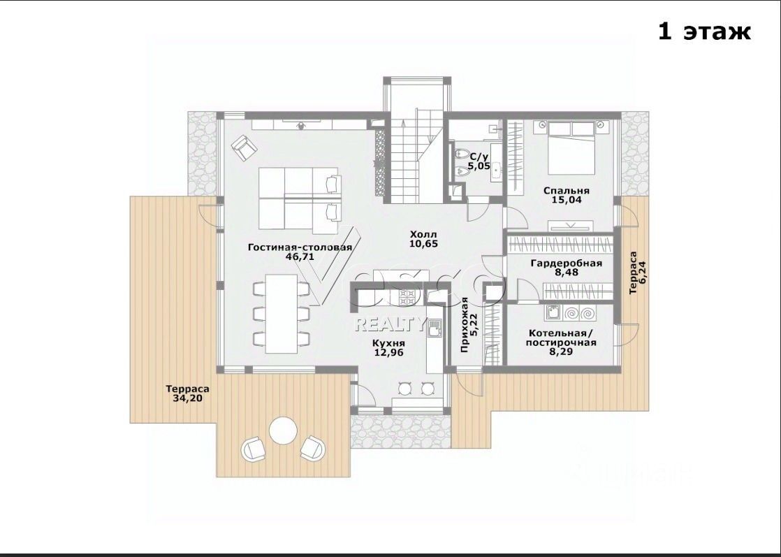 В доме: 4 спальни, гостиная-столовая и кухня с выходами на просторное патио из качественной ДПК-доски, 3 гардеробных, 3 с/у(включая панорамную ванную и просторную душевую при мастер-спальне), котельная-постирочная.