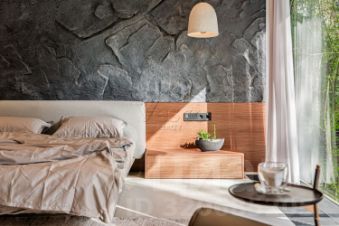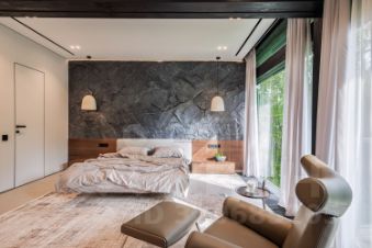 Выполнена авторская отделка с применением трендовых материалов(возможна индивидуальная комплектация под "тапочки"). Дизайн в модном сегодня теплом минимализме. Отличительной особенностью проекта являются стеклянные стены от пола до потолка, высокие потолки, монолитное межэтажного перекрытие и как следствие -отсутствие "торчащих" батарей, каменные межкомнатные стены.