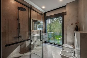 Потрясающие виды на лес сквозь стеклянные стены всех спален дома, лучший из которых открывается с парящей кровати BOCA AIRBLADE (обладатель Red Dot 2024) в мастер спальне, уютное патио под сенью столетнего дуба, музыка и прозрачная ванна из материала CrystalМоod в мастер-ванной, зеркальная кухня для неповторимых завтраков и многое другое.