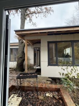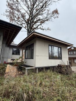 Основной дом 200 кв/м (газ и электричество заведены) и гостевой дом или баня 40 кв/м, участок 10 соток примыкает к лесу.