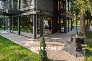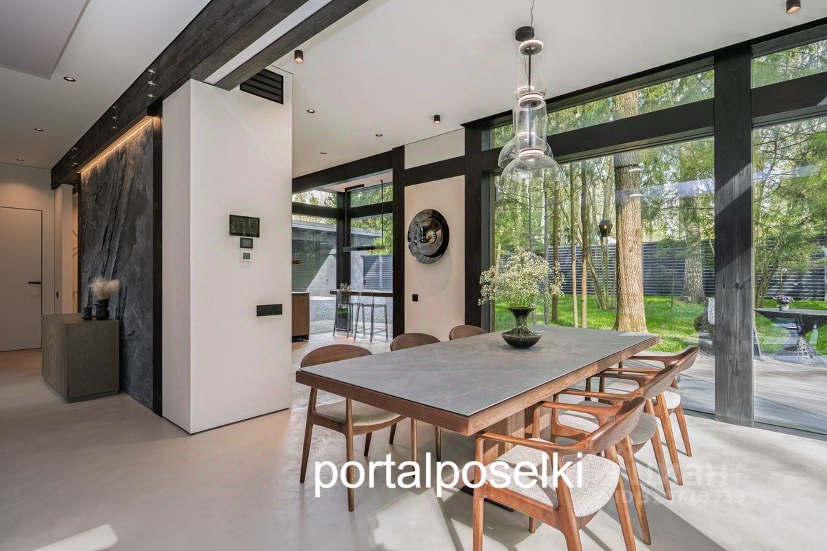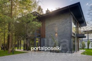 Новый концептуальный коттедж площадью 300 кв.м, построенный по немецкой технологии фахверк на участке 13,5 соток с вековыми елями и дубами в тихом лесном поселке в 26 км от МКАД по Рублево-Успенскому шоссе.