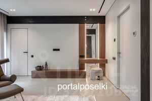 Высококачественная отделка, эксклюзивное цветовое решение стен, установлена современная кухня в натуральном шпоне, полностью укомплектованная шведской техникой Asko, вытяжкой Elica Hidden, винным холодильником, встроенной док-станцией с моющим роботом-пылесосом и беспроводной зарядкой для телефона. Столовая-гостиная также полностью укомплектована стильной мебелью в натуральном шпоне.