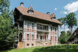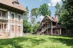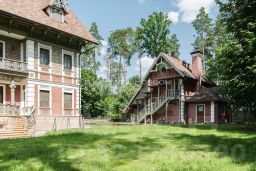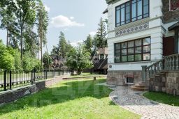 Участок 30,65 соток, ровный, огорожен забором на бетонном основании. На участке гараж 75 кв м с квартирой для персонала, лесные деревья, газон. Выполнено освещение, парковка и дорожки выложены брусчаткой. Соседи все построены.