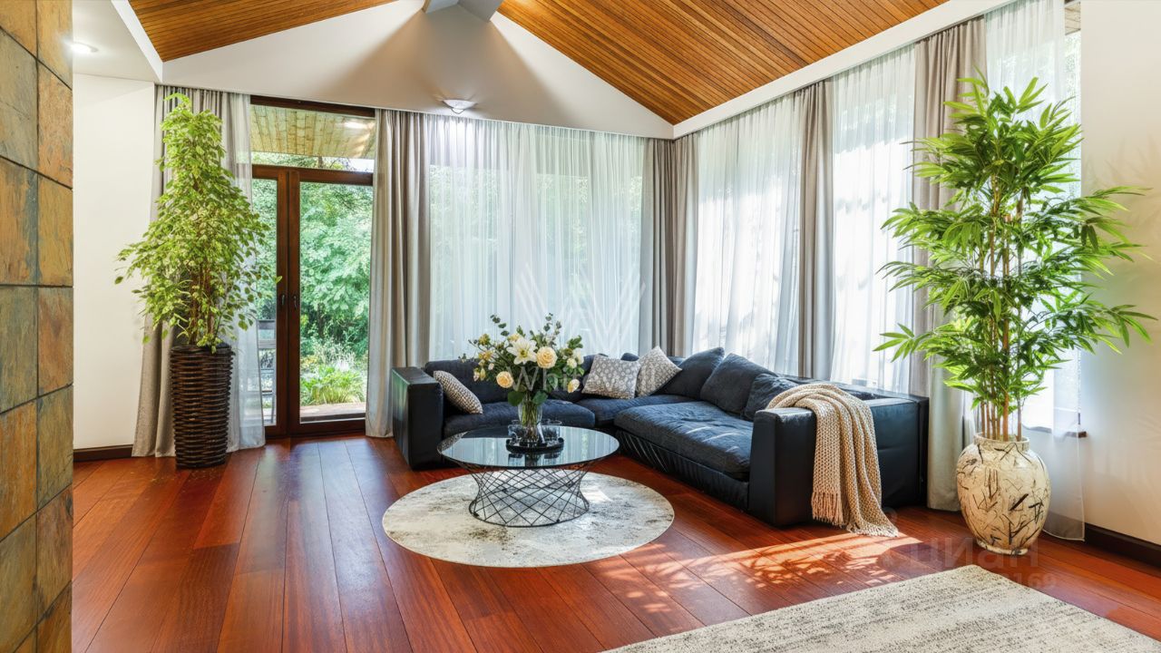Оставить автомобили можно под удобным навесом. На участке вдохните запах свежескошенной травы, прогуливаясь по мощеным дорожкам в тени высоких деревьев, и любуйтесь декоративными кустарниками. Вечером мягкая подсветка сада и дома превращает крытую террасу с зоной барбекю и беседку в волшебные уголки для романтических вечеров и тёплых посиделок на свежем воздухе.