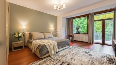 Интерьеры, оформленные в спокойной цветовой гамме, представляют собой гармоничное сочетание природных фактур камня и дерева. Элегантные витражи, изящные светильники, картины, предметы декора и мягкий текстиль наполняют пространство уютом. Мебель и бытовая техника обеспечивают комфорт для будущих владельцев. Планировка включает просторную гостиную с камином, плавно переходящую в кухню-столовую, а также 5 спален, учитывая мастер-спальню с вместительной гардеробной. Особого внимания заслуживают бассейн, оборудованный проектором, и хаммам с ароматизацией.