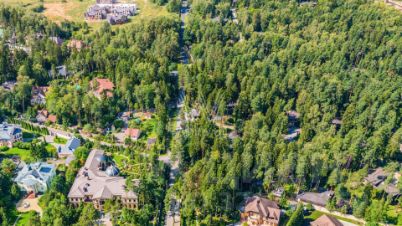 Лесной ручей-3. Загородный коттедж площадью 390 м² расположен на живописном лесном участке 26 соток. Фасад выполнен в стиле легендарного американского архитектора Фрэнка Ллойда Райта. Горизонтальные линии здания и крыша с широкими свесами создают эффект органичного единения с природным ландшафтом, словно продолжая его.
