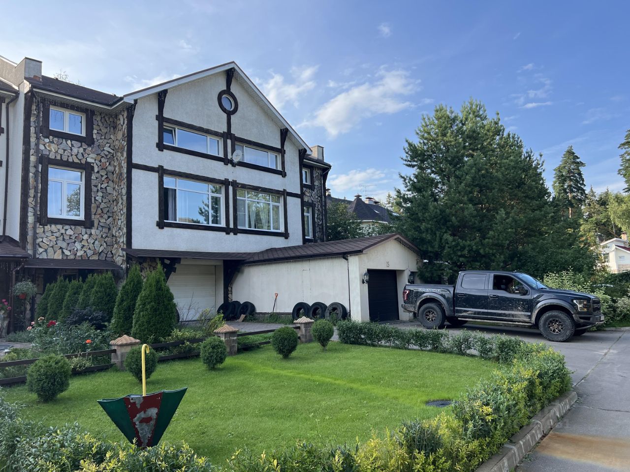 На первом этаже находится котельная. Выход во двор на участок 2 сотки, примыкающий к лесу. Установлены рольставни на окна и на стеклянную дверь первого этажа со стороны двора. Гараж для полноценного джипа, вход в гараж как снаружи, так и с первого этажа дома.