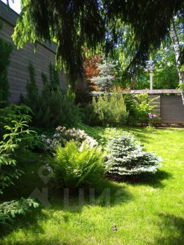 Дом расположен на участке 10 сот, с авторским ландшафтным дизайном в скандинавском стиле, с вековыми деревьями и сортовыми хвойными растениями, в концепции
