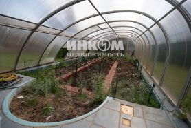 Ухоженный, ровный участок правильной формы 34,84 соток, огорожен забором и оборудован автоматизированными электрическими воротами, видеонаблюдение по периметру. К участку подведены все центральные коммуникации: газ, вода, канализация, электричество. На участке установлены автоматический полив деревьев и газона, автоматическое включение и выключение освещения, видеонаблюдение с приложением. Имеется колодец. Дополнительно на участке имеются: зона барбекю с мангалом, огромная теплица 133 кв.м . детская площадка. Предусмотрено место для парковки на три машино-места. Ухоженная территория с освещением, луговым газоном, лавочками для отдыха. По периметру и на участке растут плодовые и хвойные деревья, кусты роз, сирени и т.д.