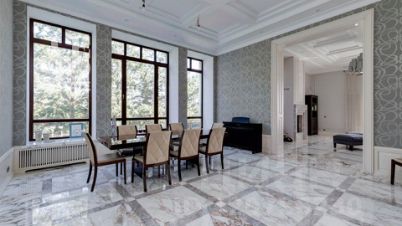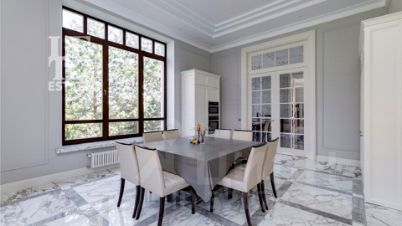 Уникальные интерьеры подчеркивают благородные материалы: теплые тона натурального дерева оконных рам по всему дому создают особую атмосферу, а высота потолков от 3,5 до внушительных 4,5 метров наполняет пространство светом и воздухом. Центрами притяжения и уюта станут два дровяных камина: один из них истинное произведение искусства, изысканно отделан и украшен полупрозрачным ониксом.