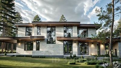 Коттедж расположен в камерном охраняемом поселке "Мозжинка", окруженном лесом и всего в нескольких минутах от городской инфраструктуры Звенигорода. Дом возведен на участке 25 соток, внутренняя отделка в формате white box, при этом возможна корректировка цветового решения фасада по желанию покупателя.